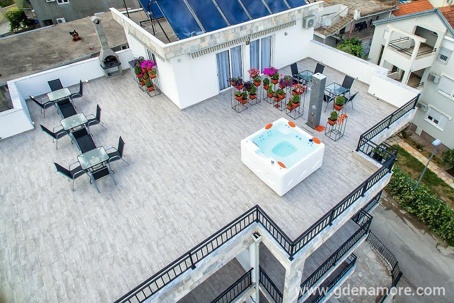 Đakuzi na vrhu mogu koristiti svi gosti uz najavu termina sobarici izuzev apartmana na vrhu čiji gosti mogu da ga koriste 24h.